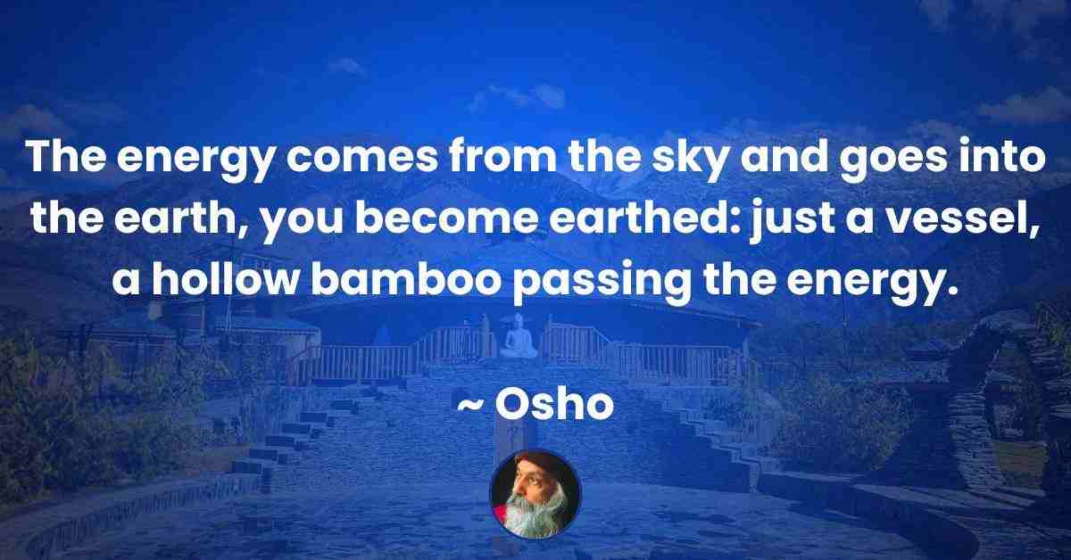 When you feel filled, the energy overflowing, bend forward. Rest your forehead on the ground. Now pour the energy down into the earth. You take from the sky and give back to the earth. Just be a hollow bamboo in between, passing the energy.